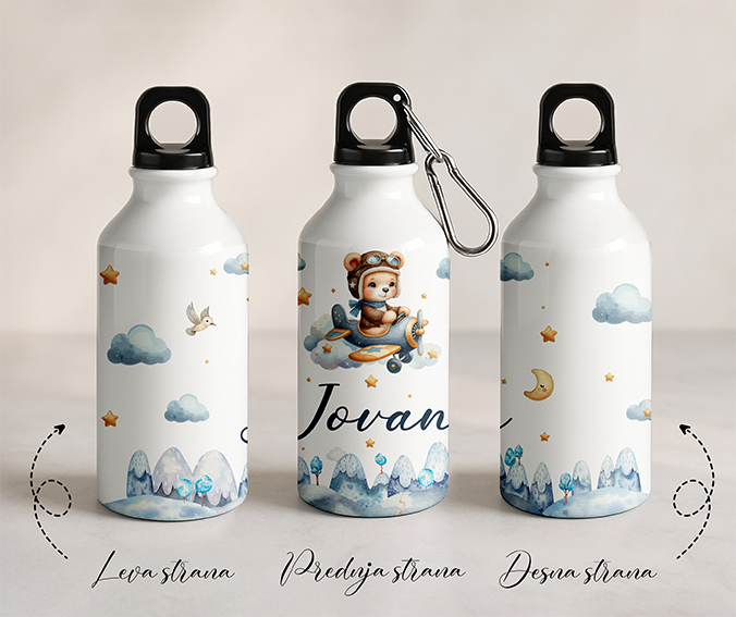 Kod nas možete pronaći personalizovano rešenje – metalna boca za vodu od 400 ml koja se izrađuje sa latiničnim ili ćiriličnim natpisima po vašoj želji. Uz raznovrsne dečije motive, svaka boca postaje jedinstvena i zabavna, idealna za poklon ili svakodnevnu upotrebu. Metalna izrada sa praktičnim karabinjerom omogućava lako kačenje i nošenje, a veličina je savršena da stane u džep od ranca. Kupovinom ovih boca aktivno doprinosite smanjenju upotrebe plastike i čuvanju životne sredine.